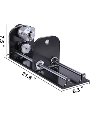 We offer you a superior rotational rotary axis with 80mm 3-jaw scroll chuck. Because of the rotary movement of the fourth rotary axis, it is available for the stereoscopic process for a cylindrical, curved, round, etc. The four-axis engraving machine is widely used in the scroll, stigma, bamboo, and so on so like.