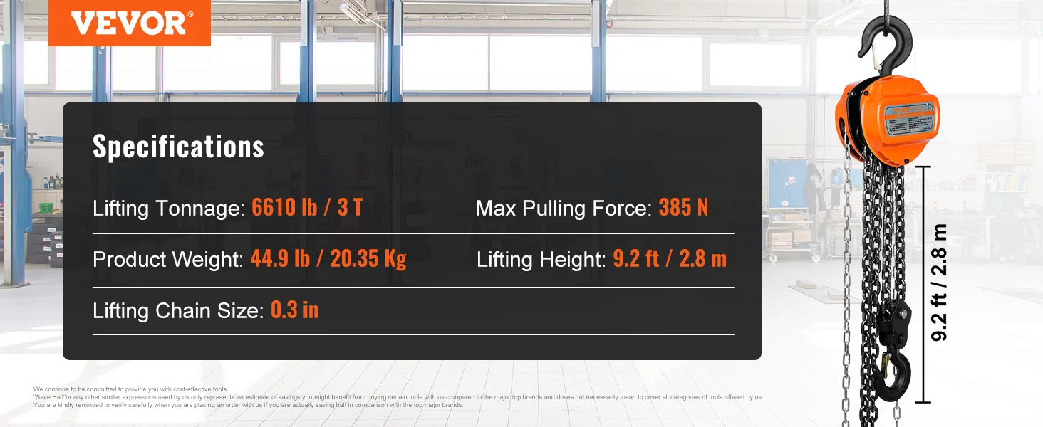 Outstanding Load Capacity: This chain hoist is made of solid carbon steel and has excellent impact resistance and oxidation resistance, designed specifically for long-term use. With simple structure and small size, it is easy to carry. Lifting capacity: 6600 lbs / 3 T.