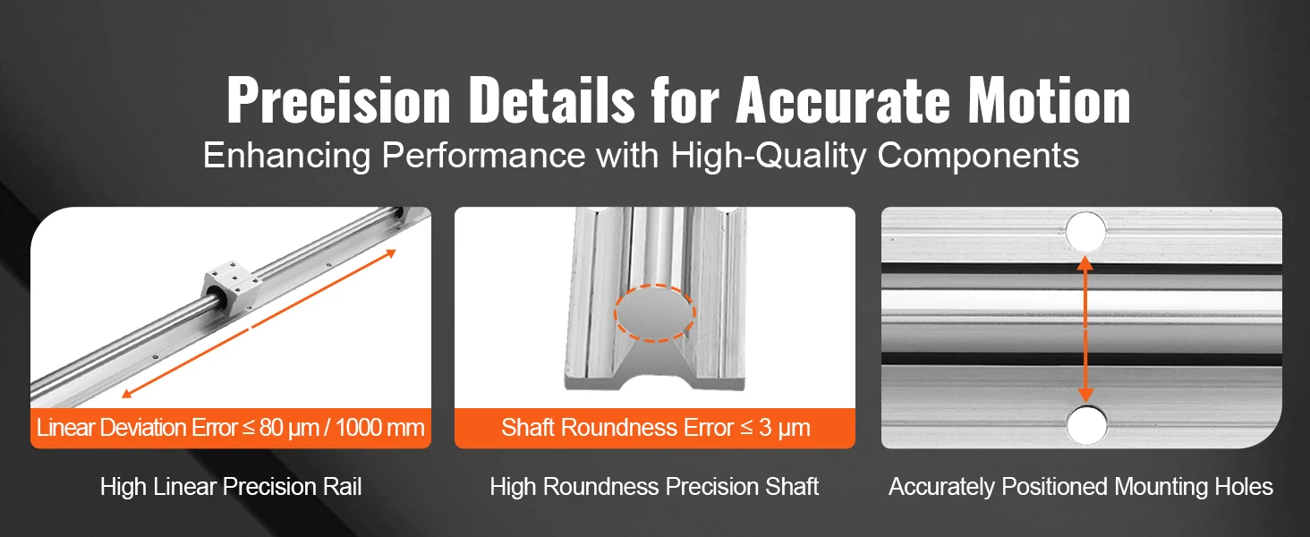 【High Precision】: Precise circular shaft dimensions and straightness, ensuring high accuracy, repeatability, and stability in its motion. The sturdy aluminum base and slide block have accurate mounting holes, making it easy for users to perform reliable installation and connection.
