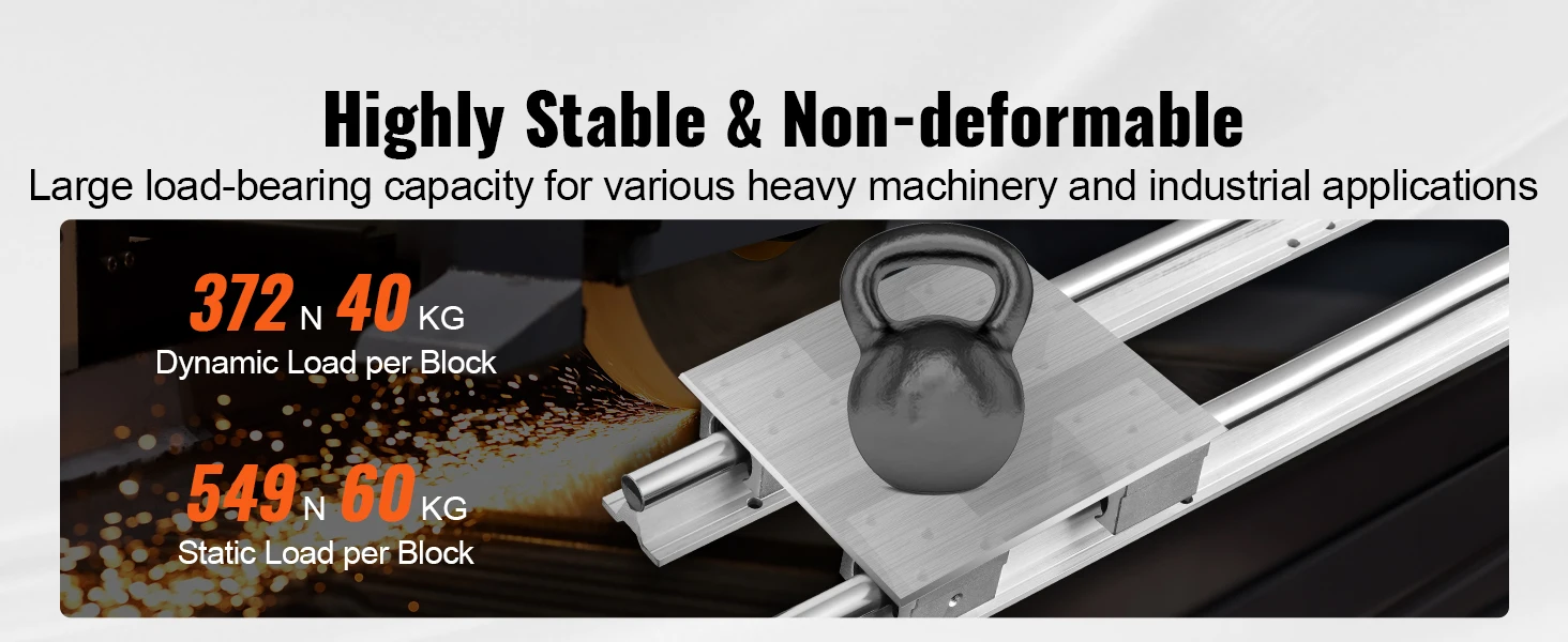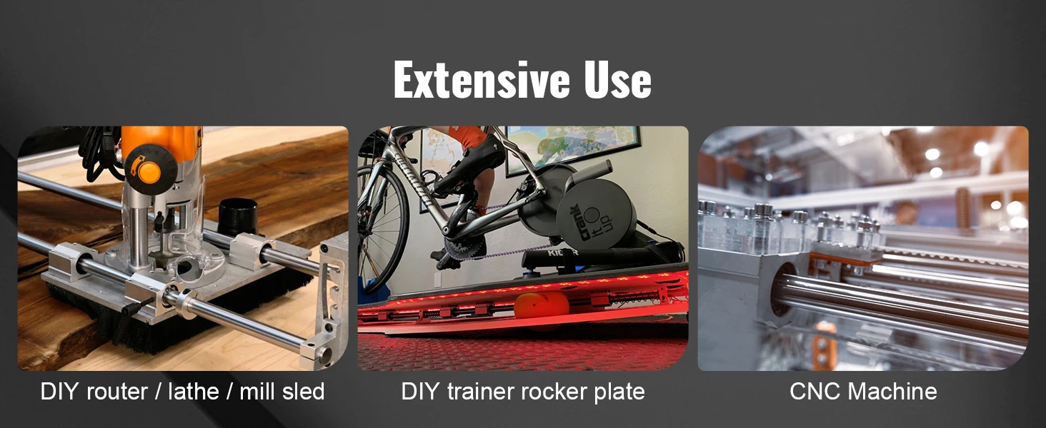 【Wide Application】: The SBR linear rail set is versatile and suitable for all kinds of high-load automation equipment and DIY project, such as router/mill/lathe sleds, 3D printers, laser engravers, CNC machines, trainer rocker plates, etc.