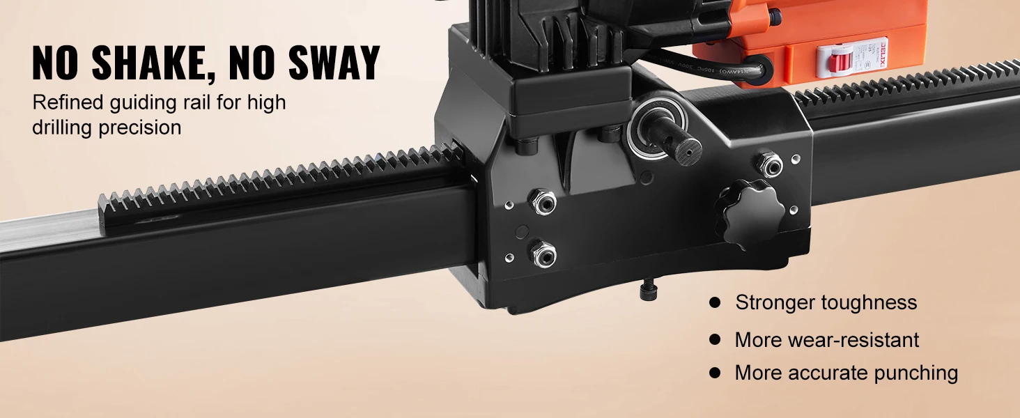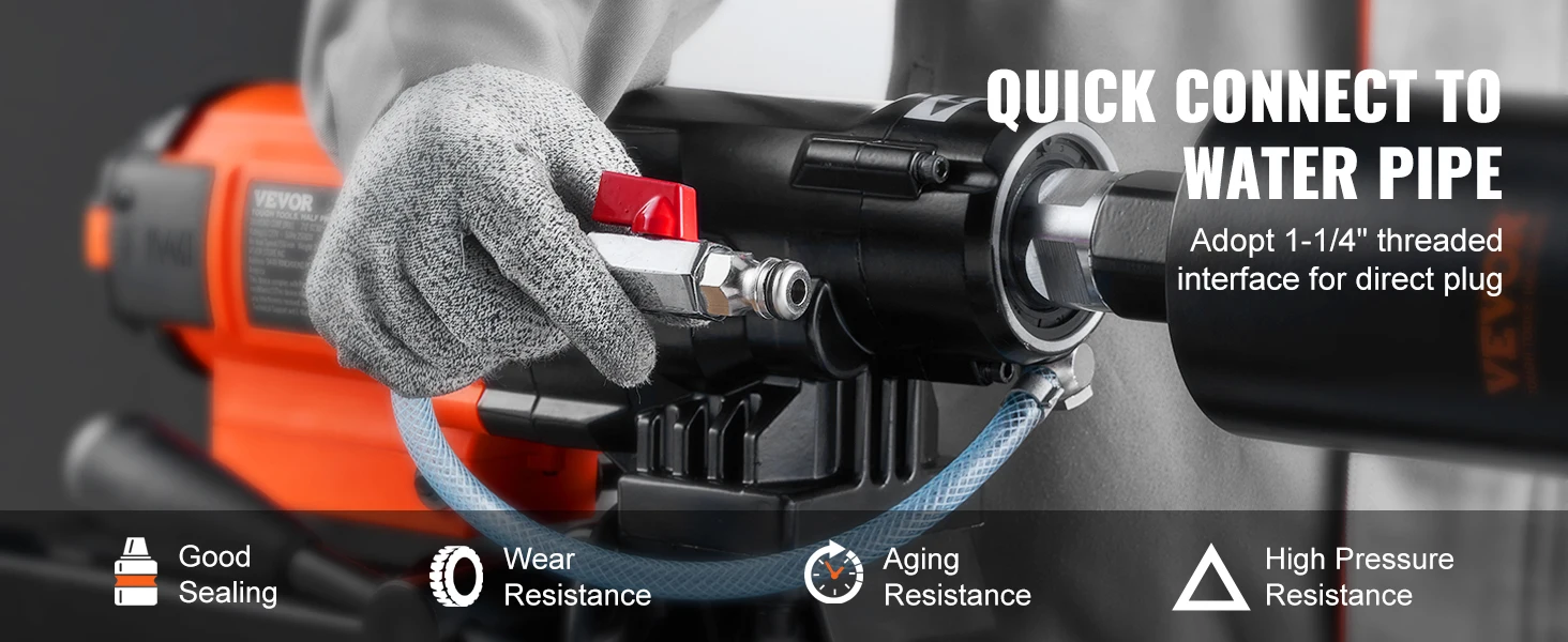 • Effortless Drilling: Our concrete core drill has a rustproof steel forged output shaft to bear more pressure, an upgraded one-touch water pipe connector for a stable water supply, and a thickened guide rail to stabilize the machine and reduce shaking.