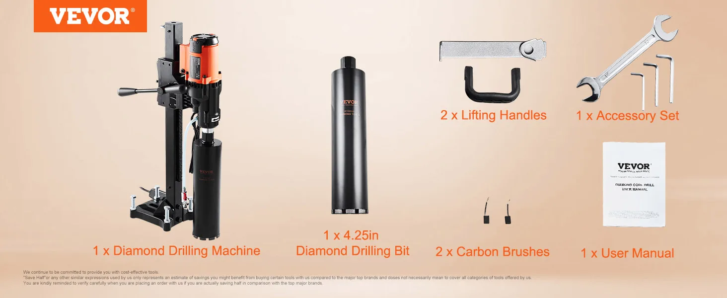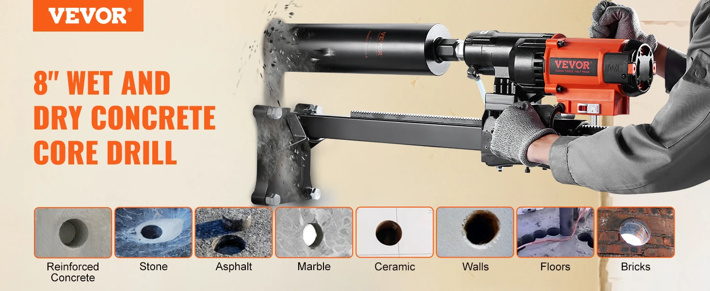 • Built for Heavy-Duty Concrete Drilling: Easy to maneuver in drilling reinforced concrete, red brick, marble, and other materials. Our wet&dry diamond core drilling rig will surely meet professional demands and is for more than just home use, and you can quickly install air conditioners, kitchen pipes, stair railings, repair highways, etc.