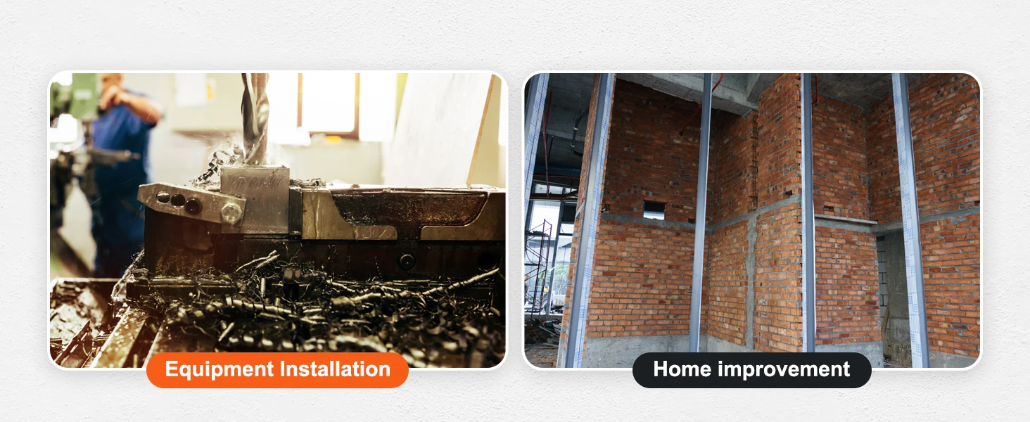 • Wide Applications: This versatile magnetic drill plays a vitally important role in home improvement, equipment installation, industrial and steel fabrication, ship and bridge building, railway manufacture, windmill & power-plant construction, and many other fields.