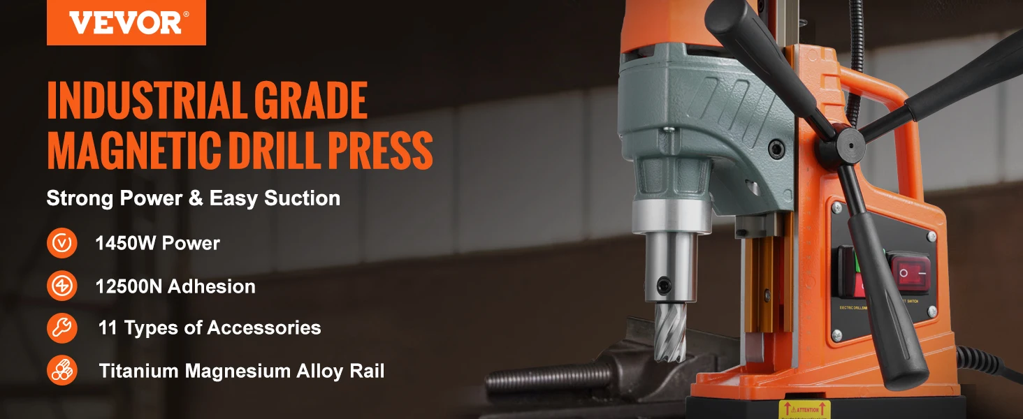 • Understand the Power: 12500N of robust force is created by the electromagnetic thickened base, featuring pure iron anchors the mag drill press solidly works at any angle stably during the drilling process. Equipped 11pcs drill bits can meet your various boring needs for a wide range of hole diameters.