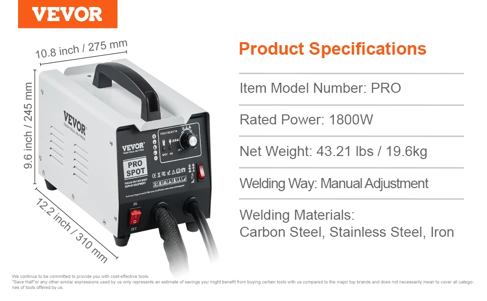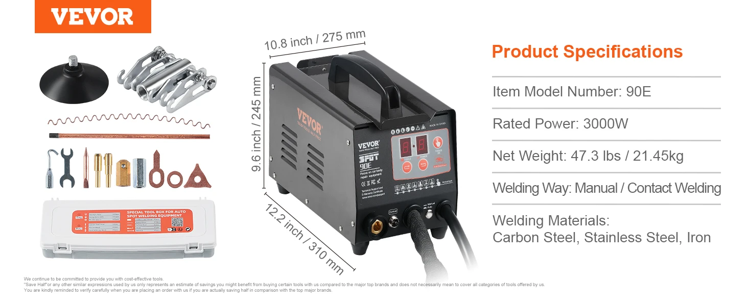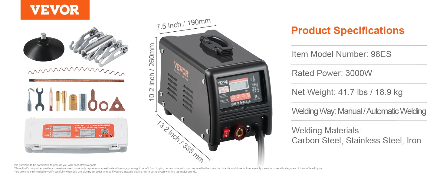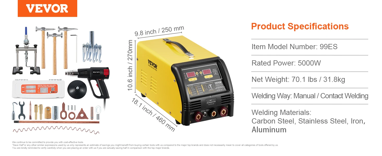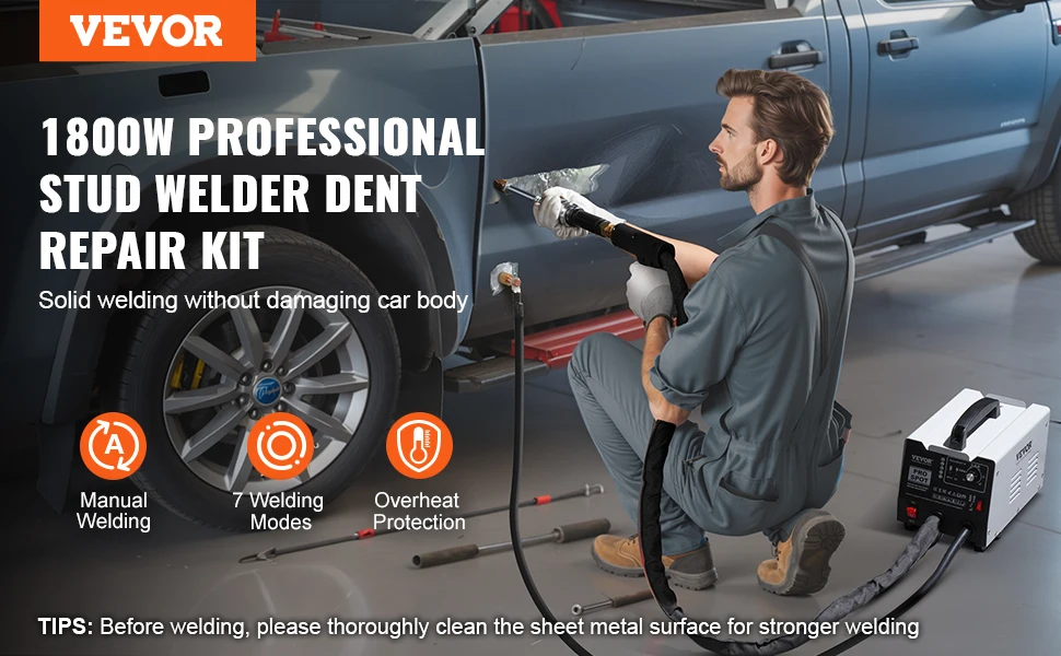 • Professional Dent Removal: VEVOR Stud Welder Dent Puller offers a fast and efficient solution for removing dents from steel car body panels, all while providing precise dent pulling and controlled force for a professional-grade dent repair every time.