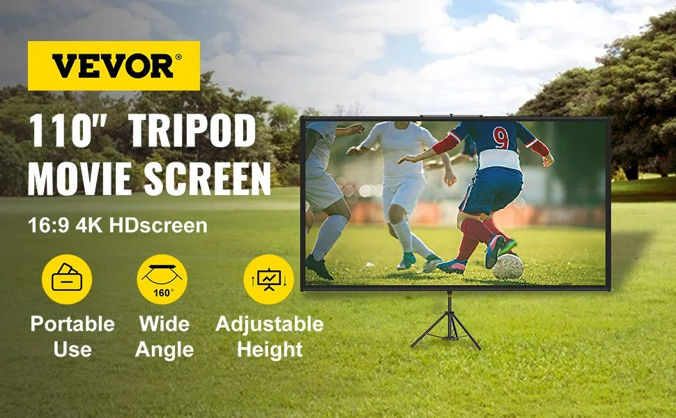 【4K HD VIVID IMAGERY】 - The projection screen tripod brings you vivid imagery and impeccable viewing experience with a 16:9 4K ultra HD resolution. The polyester screen provides an outstanding image reproduction due to its wrinkle-free surface. Four black side borders are designed to enhance picture contrast.