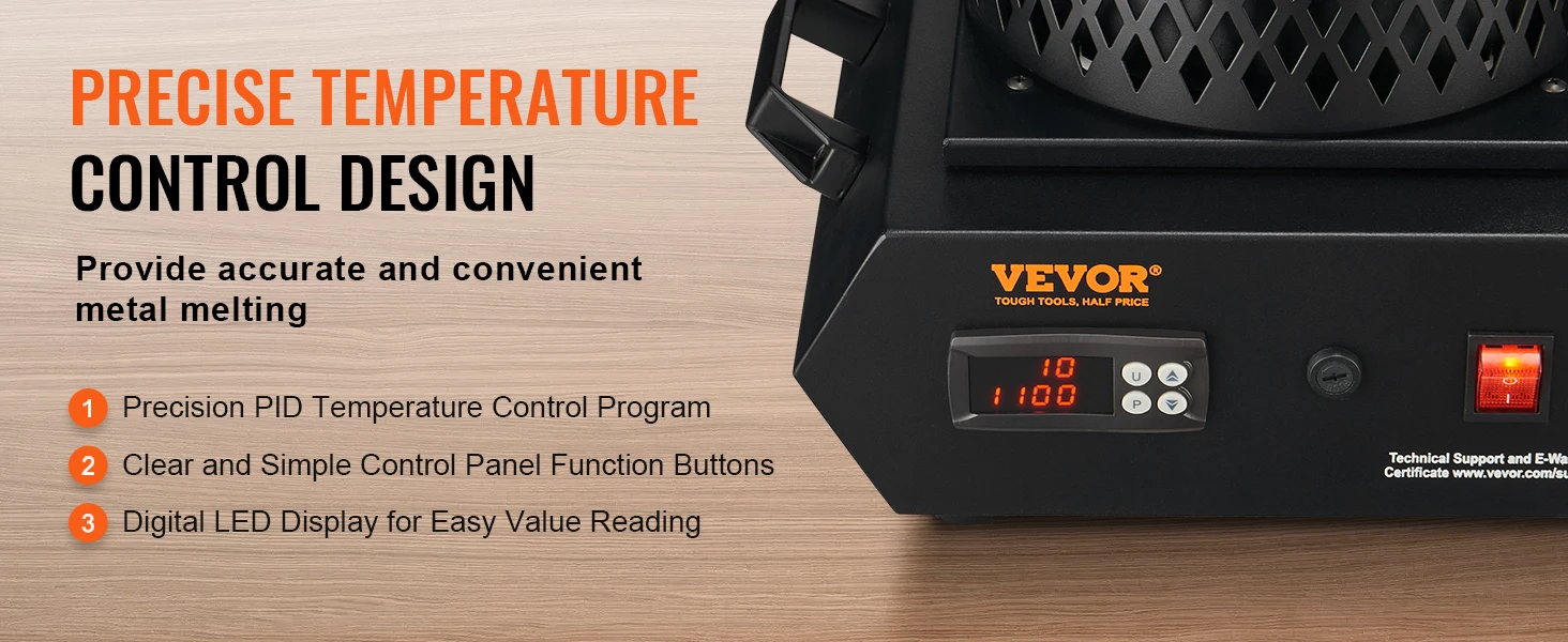 • Precision Temperature Control: The electric smelting furnace is equipped with an advanced and precise PID digital control system, ensuring accurate monitoring and calibration of the actual temperature. With only 4 buttons on the control panel and an easy-to-read digital LED display, the furnace guarantees precise temperature control, making it user-friendly for beginners.