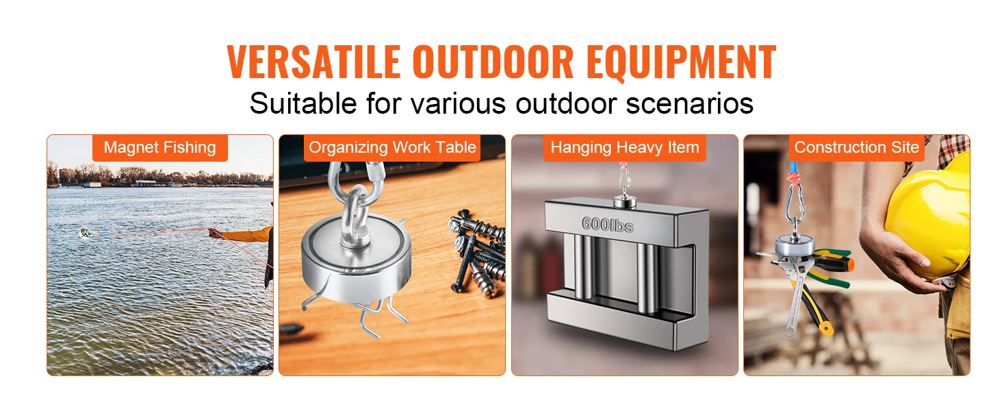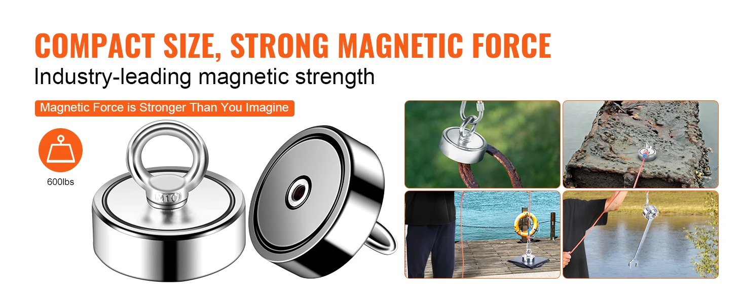 Magnetic Force Upgrade: With a pulling power of up to 1200lb (600lb per side), this fishing magnet provides a compact size with exceptional magnetic strength, positioning it at the top of the industry.