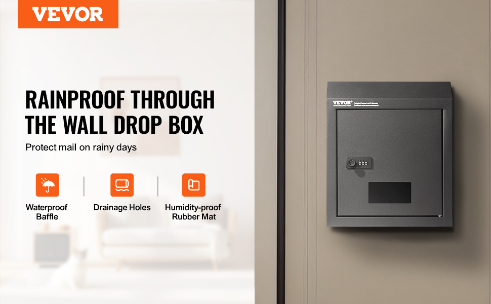 VEVOR Wall Mounted Code Drop Box, Protect Your Objects! Our wall-mounted code box with its unique waterproof flap keeps storms at bay. Floor drain holes and moisture-resistant rubber pads work...