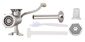 This 304 stainless steel hand-operated meat grinder is detachable and easy to clean after use. To assemble, just follow the sequence of attaching the head nut, perforated plate, cross blade, screw auger head, screw auger, shaft sleeve, machine body, body clamp, and handle.