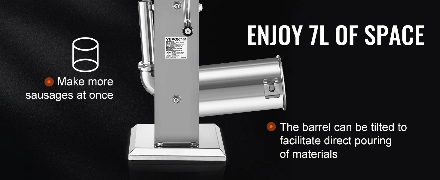 Large Capacity & Easy to Clean: Are you tired of running out of room? The 1.8 Gal / 7L capacity ensures that more sausages can be made at a time, saving you a lot of efforts. The detachable design is perfect for easy cleaning.