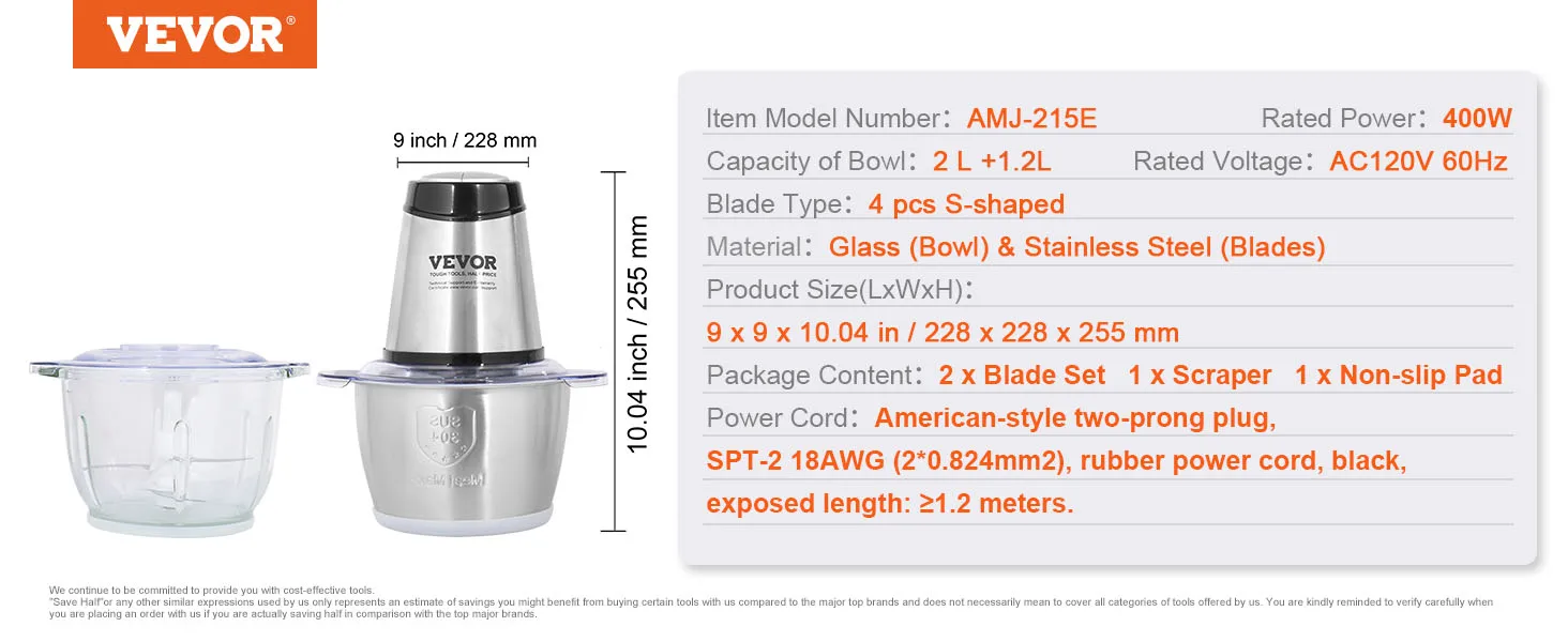 Healthy and BPA-free: Our food processor boasts a 2000 ml/8 cup stainless steel bowl that prioritizes your well-being. Crafted without harmful BPA, you can now prepare mouthwatering meals for your entire family without any worries about health risks.