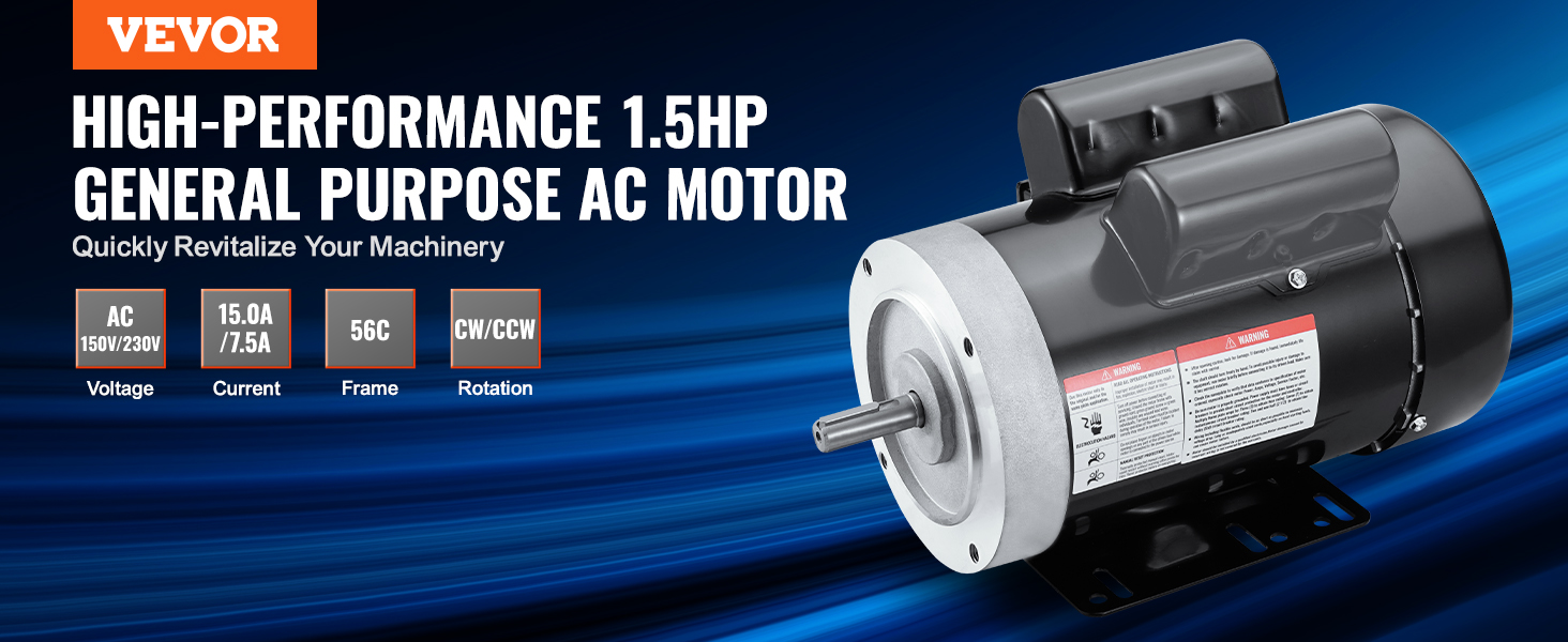 Wide Range of Applications: VEVOR 1.5HP general purpose motor is universally applicable, ideal for water pumps, agricultural machinery, and general equipment. It's perfect for DIY projects and repair replacements, providing versatile and powerful functionality for various needs.