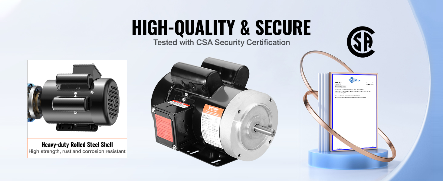 Durable and Safe: Tested to CSA standards. This air compressor motor features a heavy-duty rolled steel shell that resists rust and corrosion, ensuring a longer service life and reliable performance.