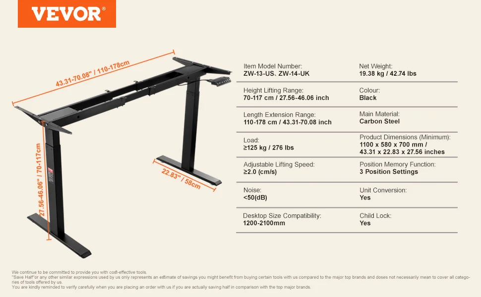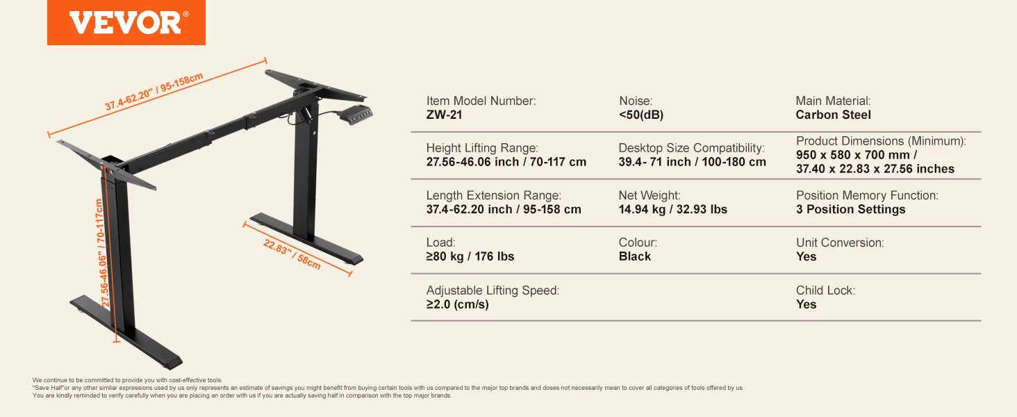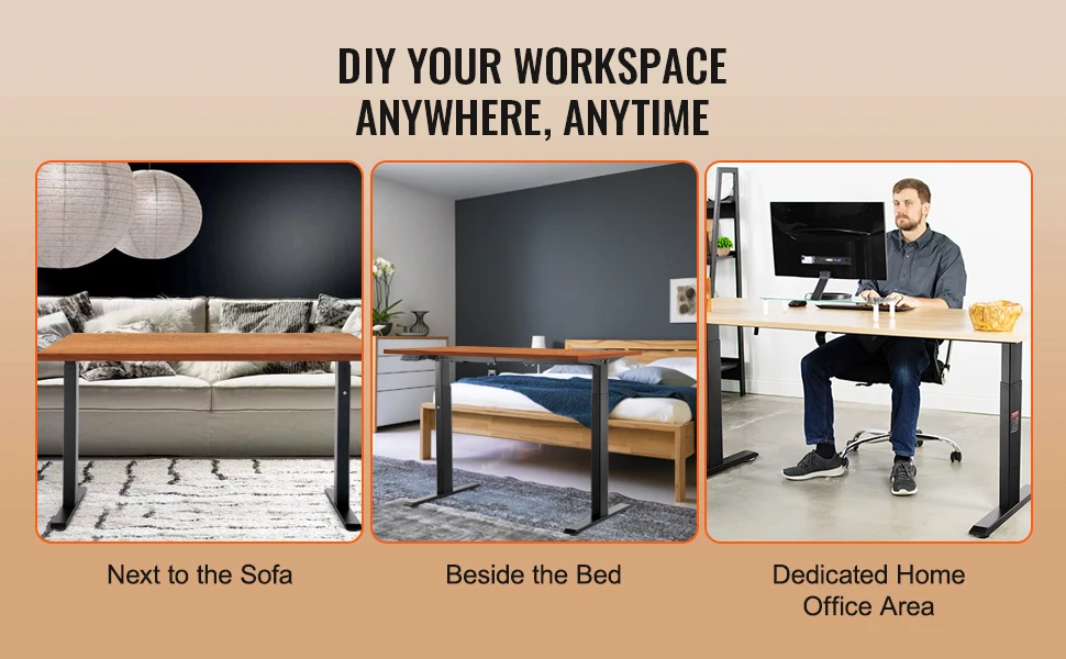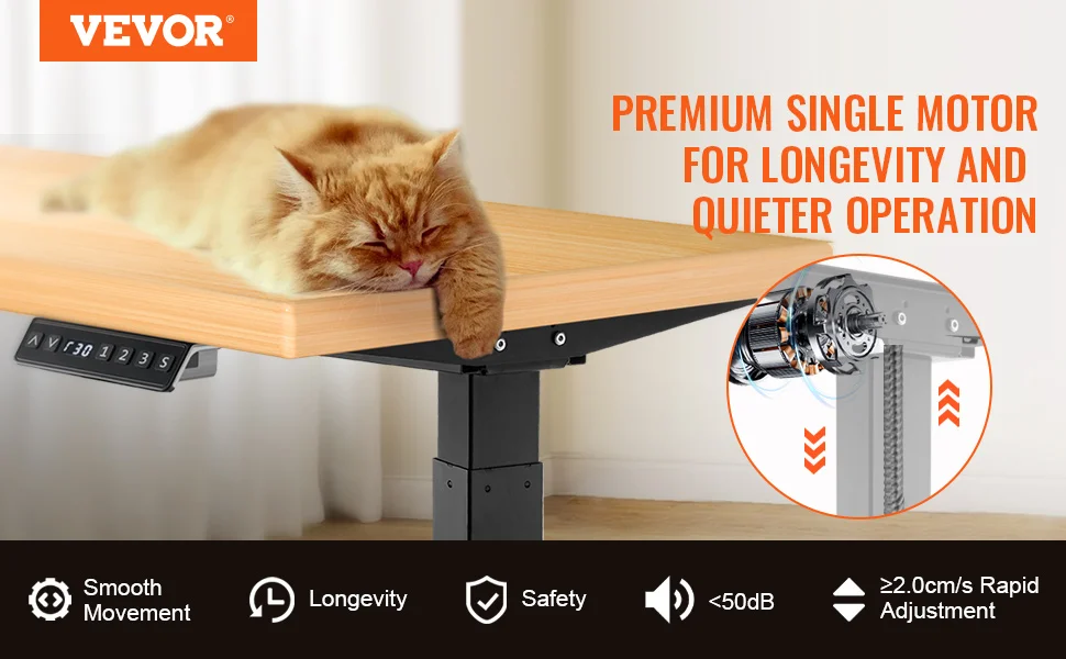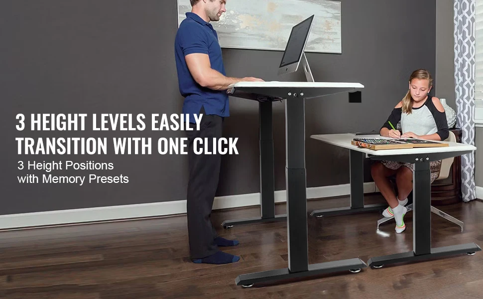 VEVOR 55.1 x 27.6 in Adjustable Height Desk Our multifunctional sit to stand desk features a pure copper motor, guaranteeing reliable long-term operation. This home office desk has been tested...