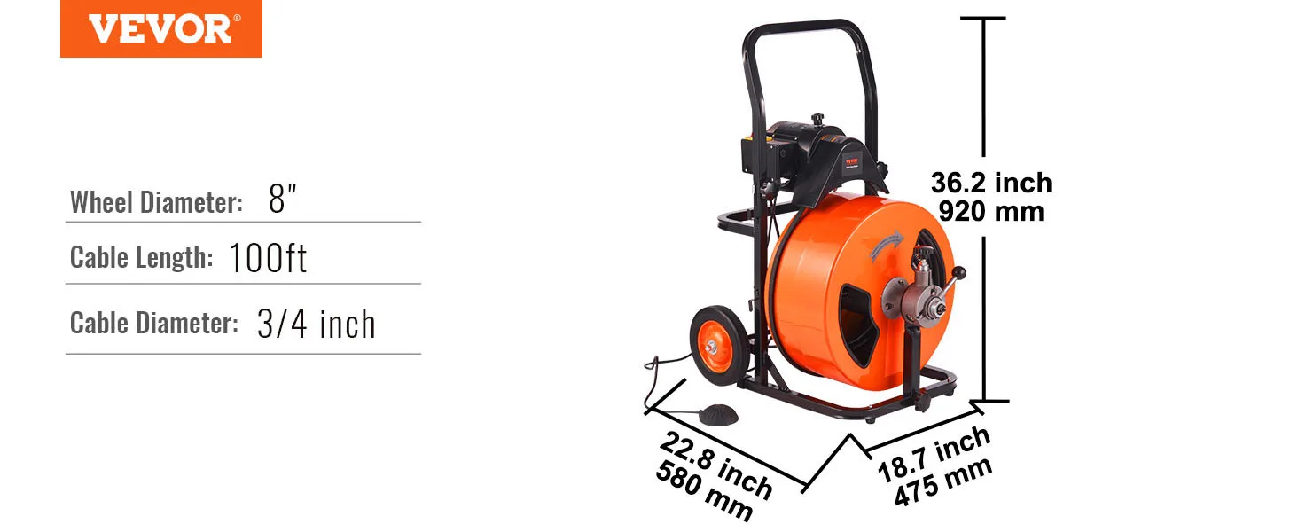 Boast Durability and Security: Our powerful drain auger cleaner, which boasts a high-quality motor with a speed of 1800RPM, is ready for anything. It features a semi-enclosed drum that allows for easy observation of the remaining cable length, as well as an upgraded steel frame with a special coating that prevents rust and extends its lifespan. Additionally, it comes with an integrated GFCI to protect operators from electric shock.