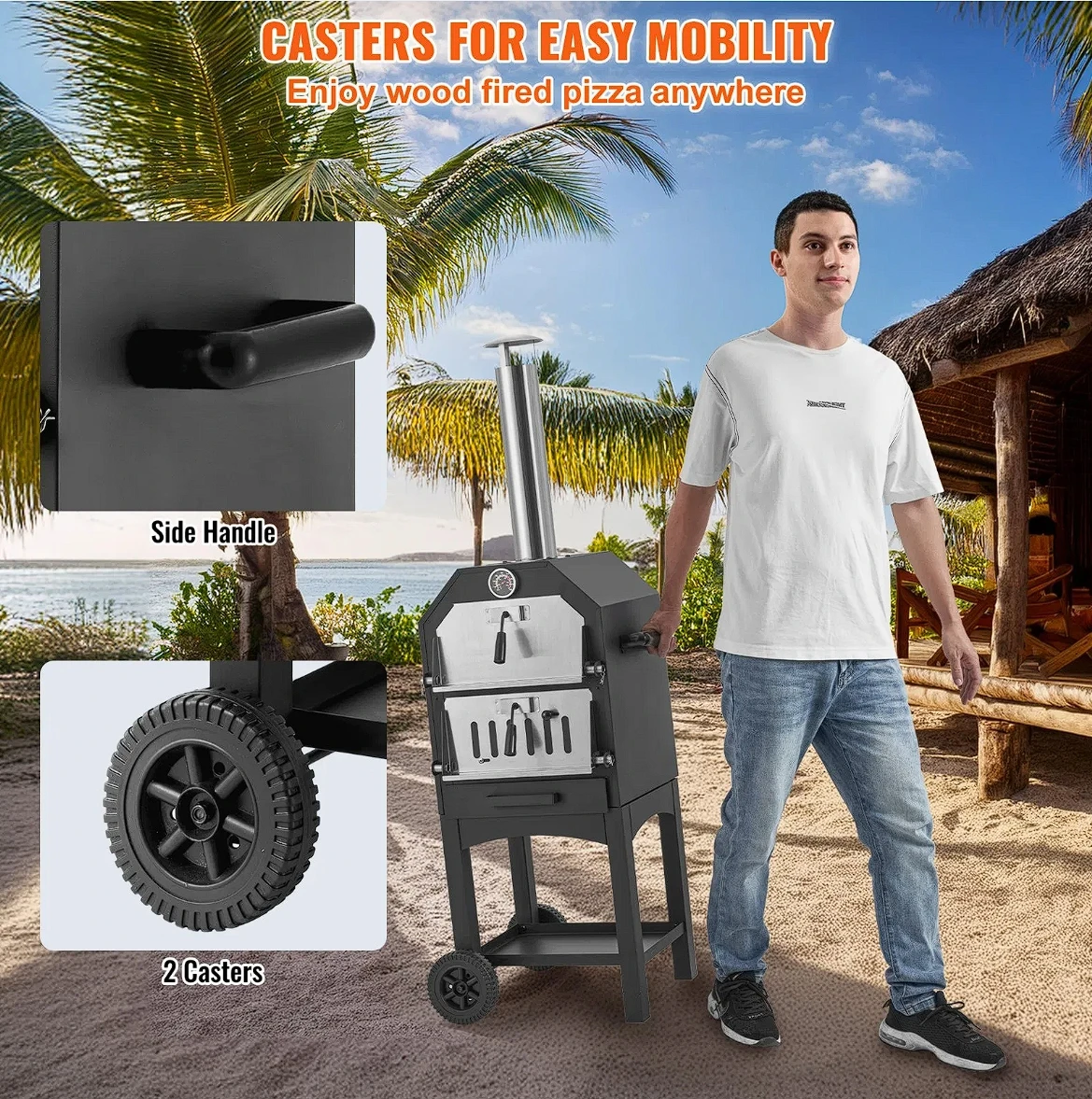 Labor-saving Wheels & Handle: The double-wheel design at the bottom and the practical handle on the side greatly improve the mobility of this pizza oven. You can move it to various remote outdoor places effortlessly. Meanwhile, it is also convenient for storage when you don't use it.