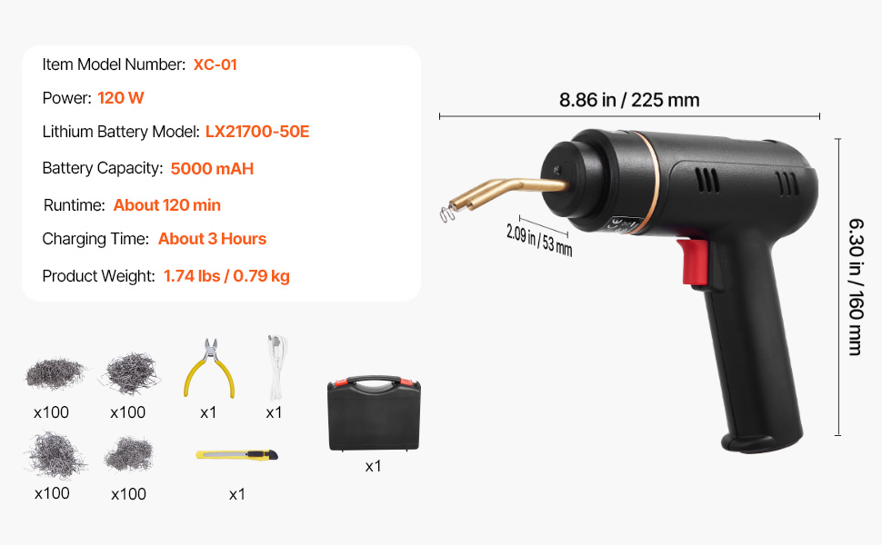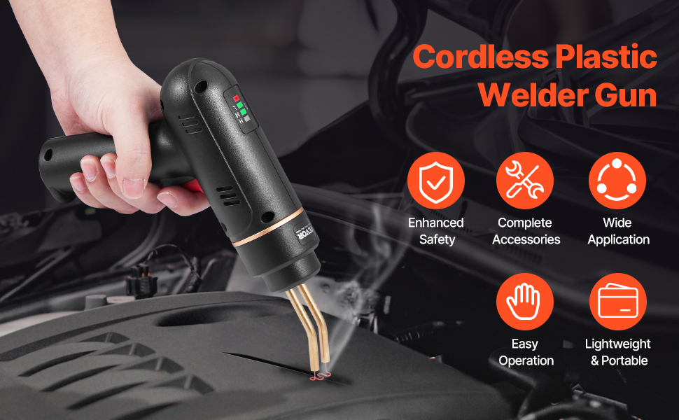 Rapid Heating: With a powerful 120W output, this wireless hot staple plastic welder gun heats up to 450℃ in just 1 to 3 seconds. Featuring built-in overcharge/overdischarge protection, this plastic repair kit ensures efficiency, safety and stability while extending the tool's lifespan.