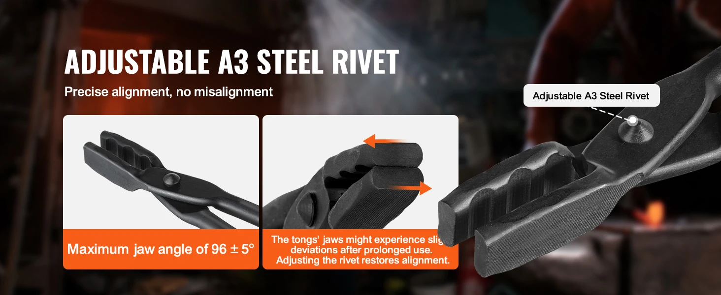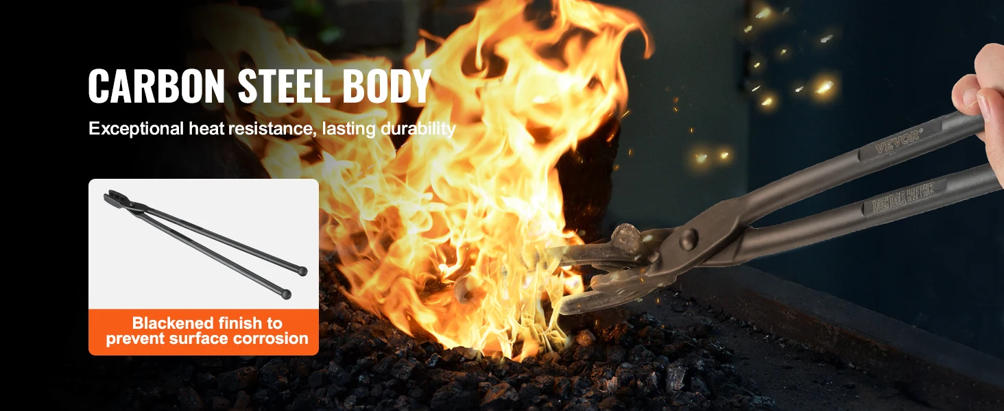 Premium Carbon Steel: Quality materials are essential for blacksmithing tongs, so we choose premium carbon steel for durability even in high-temperature environments, maintaining stability and longevity.
