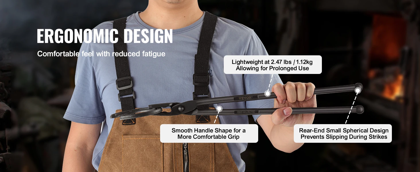 Craftsmanship Meets Comfort: No more fatigue! The 2.47 lbs / 1.12kg lightweight forging tongs allow for extended gripping without strain. The small round ball design at the end keeps slips at bay, while the handle's gentle curves make forging a breeze.