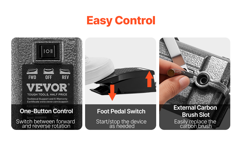 Enhanced Durability: Made with ABS + PC material, the foot pedal switch prevents overheating and electrical leakage, ensuring safe operation. The aluminum alloy handle and stainless steel flexible shaft provide superior strength, offering excellent durability for extended use.