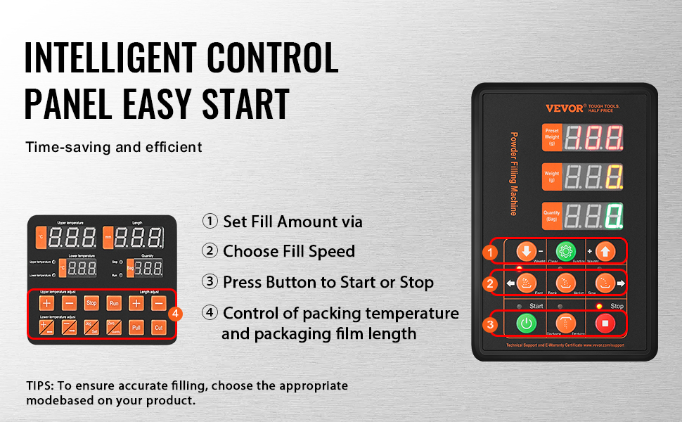 Intelligent Control: Take charge effortlessly! The automatic powder filling machine boasts an intelligent control panel, allowing you to adjust filling weights and speeds with ease for different materials. It's multifunctional and oh-so-easy to use.