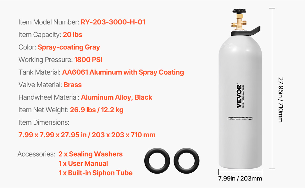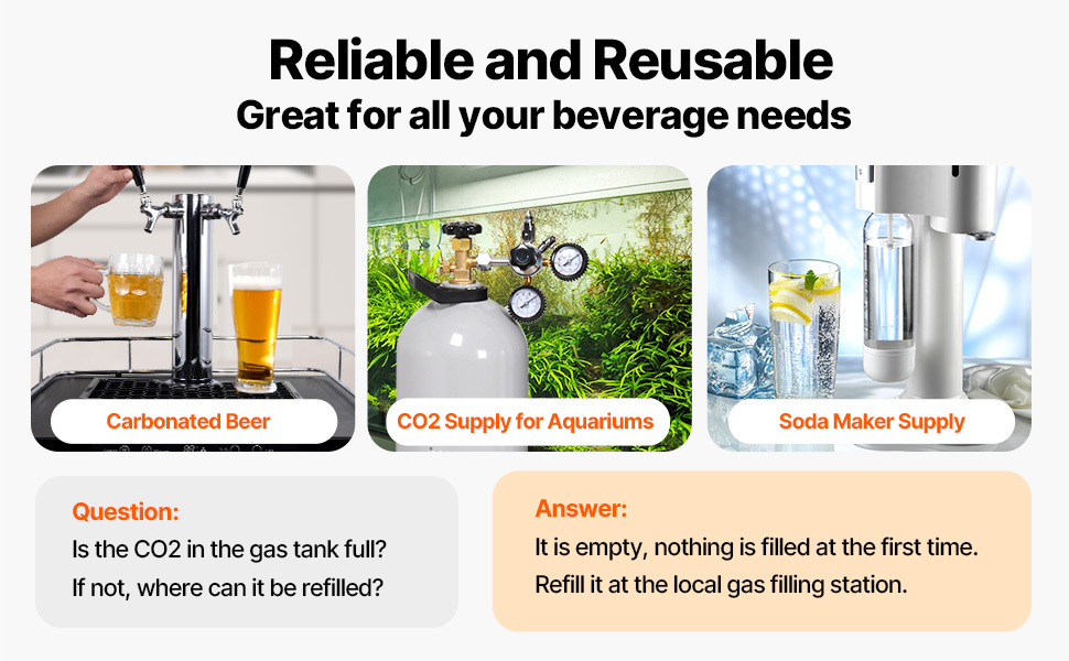 • Leak-proof Design: Our CO2 gas tank contains a CGA320 standard valve, compatible with 8 mm hoses and featuring external threading for CO2 regulators. Additionally, it comes with washers to effectively stop gas leaks for peace of mind