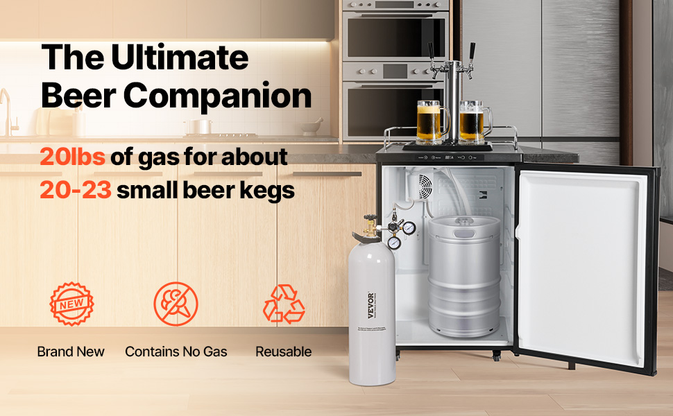 • Your Go-to Beer Companion: Designed without pre-filled gas, our CO2 cylinder tank can be loaded with 20 lbs of food-grade, 99.95% pure CO2 compliant with E290 standards. It's reusable and ideal for dispensing around 20-23 small beer kegs, making it an essential addition to any beer enthusiast's setup