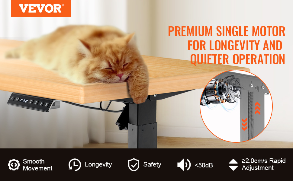 This standing desk is crafted with premium motor design, ensuring not only long lifespan but also whisper-quiet operation. Its smooth movement ensures safety and reliability, emitting noise levels for a tranquil and comfortable work condition.