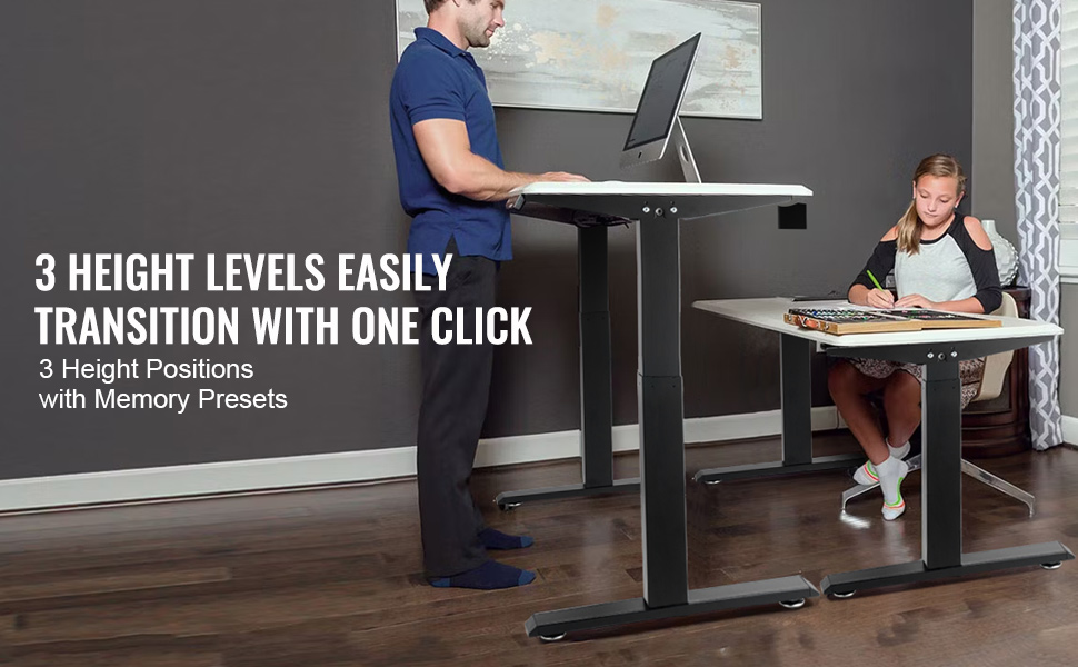 Equipped with a 3-position height adjustment feature, you can effortlessly switch between sitting and standing modes, boosting your productivity. Its spacious work area design allows ample space for your work essentials, ensuring a comfortable office experience.