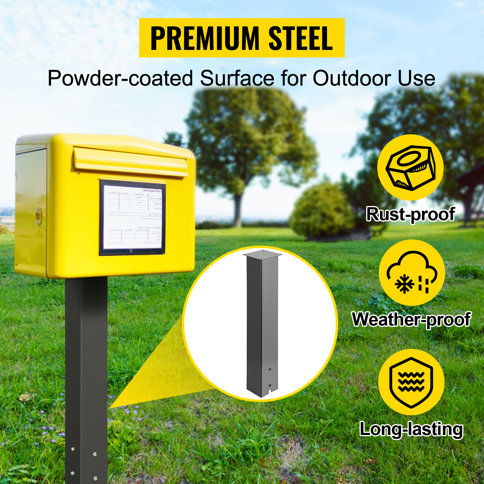 【HEAVY-DUTY STEEL MATERIAL】- This 27" black mailbox post standard is made of high-quality steel material, rust-proof and corrosion-proof for long-lasting usage. The finish is powder-coated to withstand various outdoor conditions, so there is no need to worry about the weather.