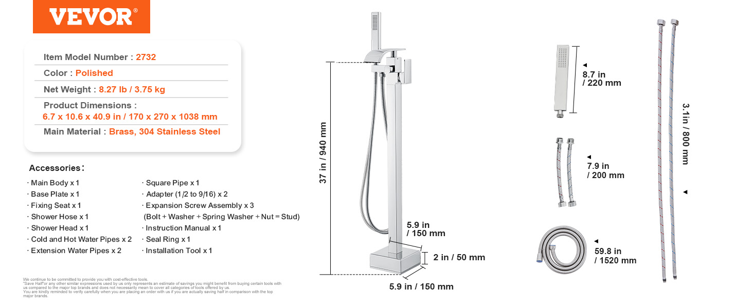 Matte Black Elegance: This freestanding bathtub faucet undergoes anti-corrosion and anti-rust treatment, exuding a luxurious feel. Key components are made of high-quality brass for durability, and the stable triangular base ensures it stands firmly. Plus, the square decorative cover adds style while keeping dust away. Elevate your bathroom effortlessly!