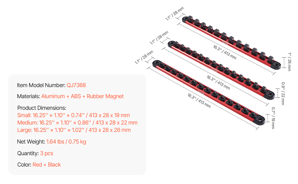 Smooth Aluminum Rail: The aluminum rail on the socket organizer allows sockets to glide effortlessly, ensuring fast retrieval and easy return to their place.