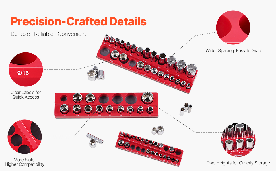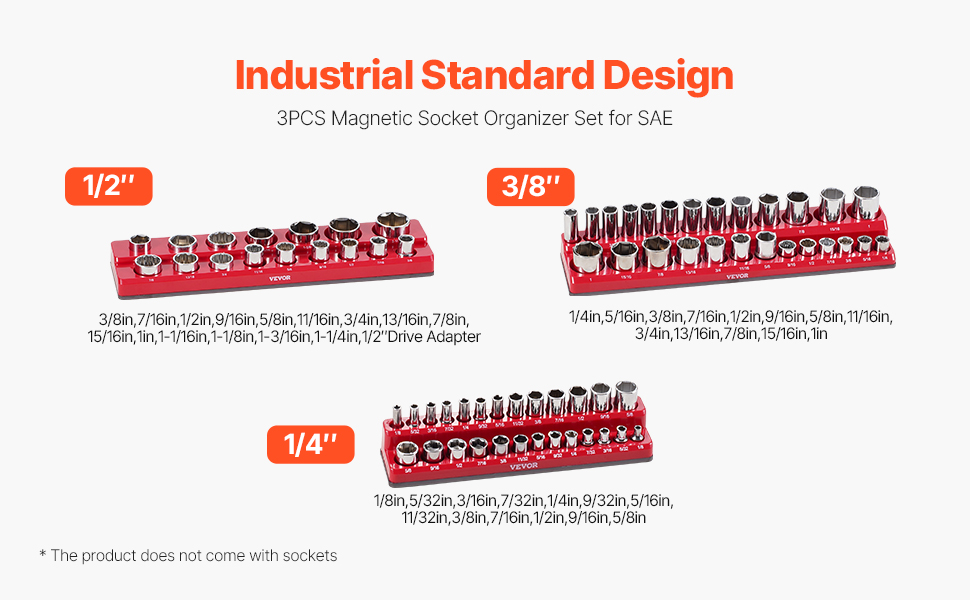 High Compatibility: Designed to be compatible with multiple socket brands, our 3PCS magnetic socket organizer set holds up to 68pcs SAE standard and deep sockets, simplifying sockets management, keeping the workspace clean and ensuring you won't lose any sockets. (Note: Sockets are not included.)