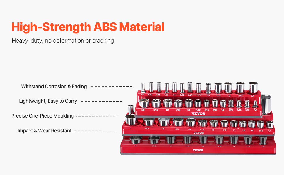 Built to Last: Made from reinforced ABS material, our socket organizer tray resists impact and wear. The clear size labels won’t fade over time, ensuring long-lasting convenience.