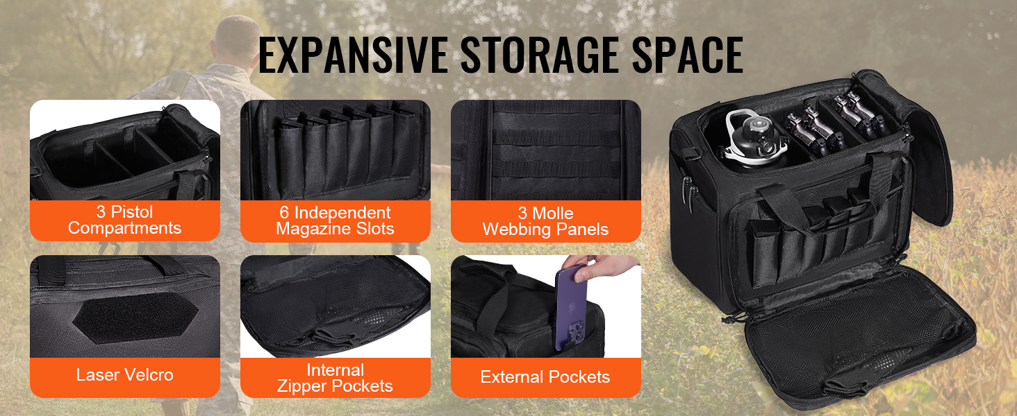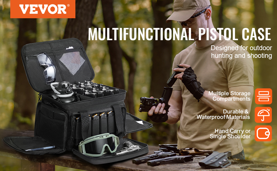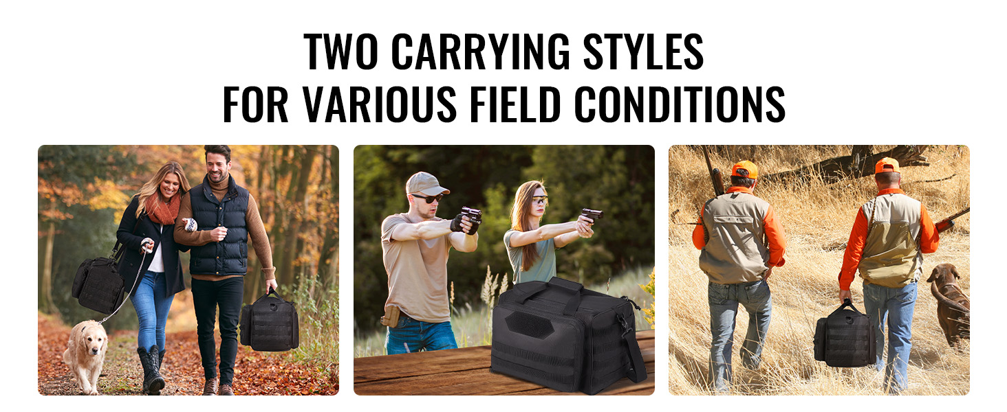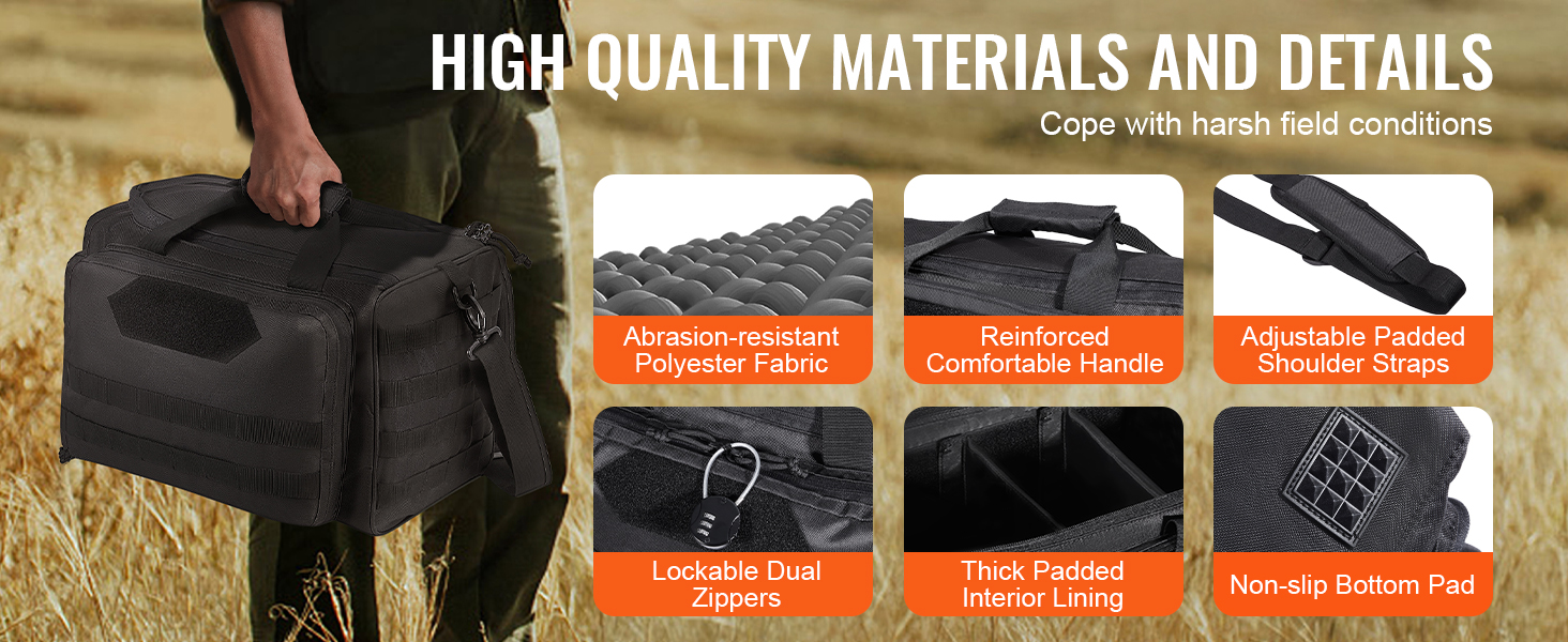 【High-Quality Materials】Made from durable 600D polyester, the range bags for handguns is waterproof and resistant to outdoor weather. Reinforced stitching ensures long-lasting use, and thick internal padding protects firearms from impacts during transport.