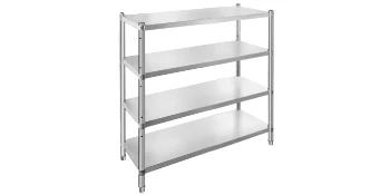 Once the product arrives, you can quickly fasten the tiers to the columns with screws. The 4 feet of our stainless steel shelf can be rotated to stand firmly on the ground.