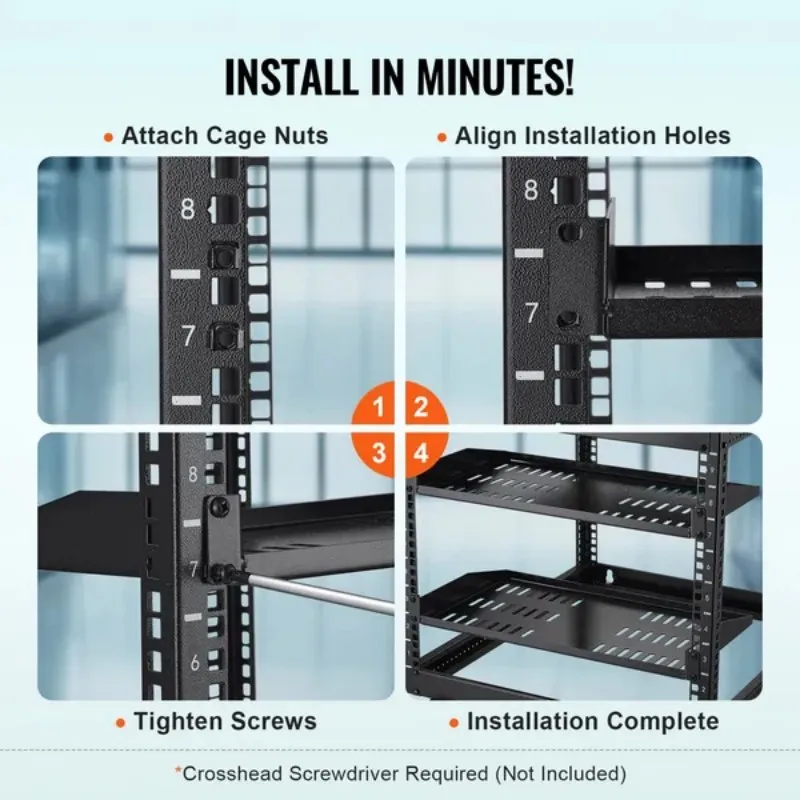 · Standard 1U Height: Get more space with our 1U server rack shelf-it comes in a set of 2! Perfect for 19-inch 4-post server racks, it's ideal for stacking routers, switches, firewalls, and other network gear. Easy storage and a neat setup in one simple solution!