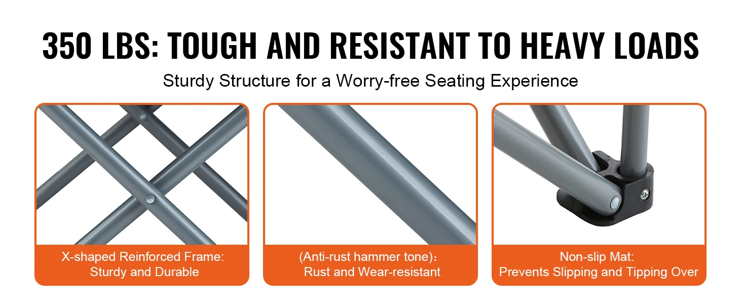 With a load-bearing capacity of up to 350lbs, it is designed with an X-brace stable structure and thickened 0.7mm steel pipes, effectively resisting environmental erosion, extending the lifespan, and ensuring stability and reliability, allowing you to enjoy leisure time with peace of mind.