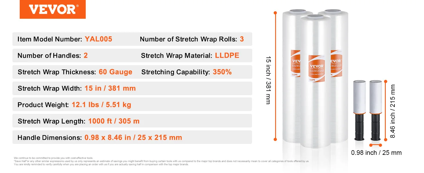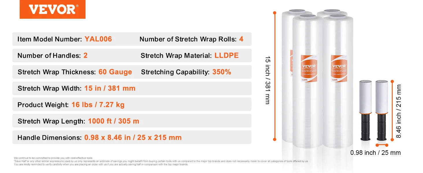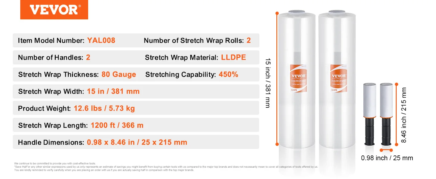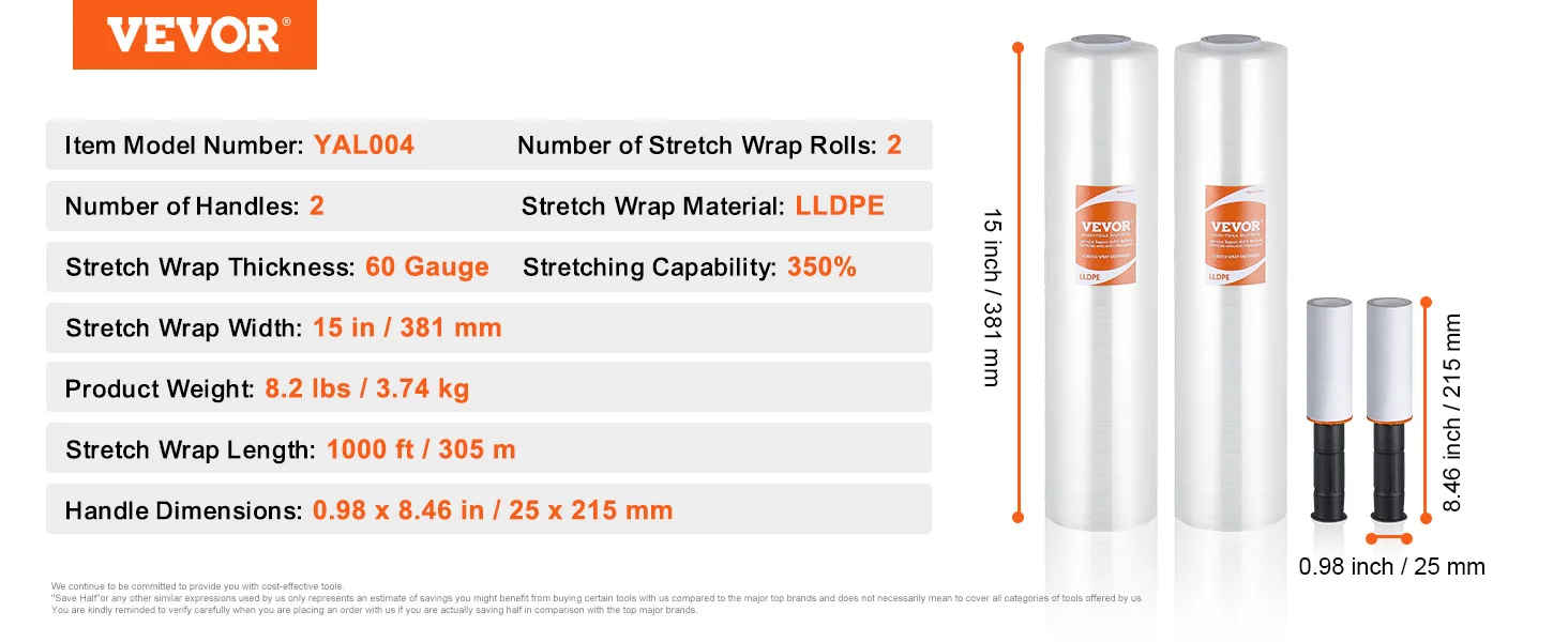 • Complementary Rolling Handles: For convenient and efficient packaging, this stretch wrap comes with nifty rolling handles that snugly match the film. No more sore hands or tangled messes even when packaging large items—just smooth, efficient wrapping for all your needs.