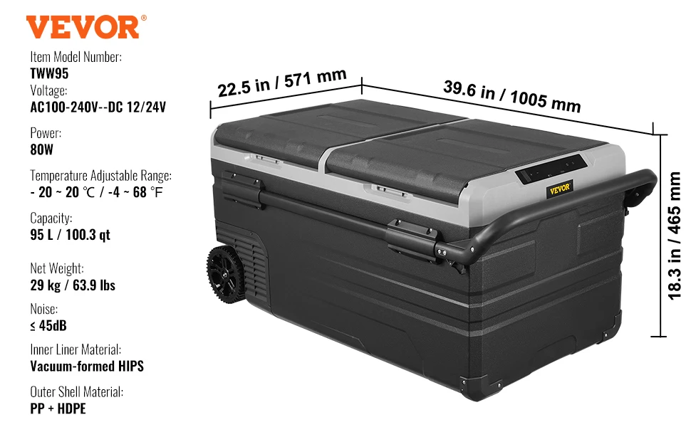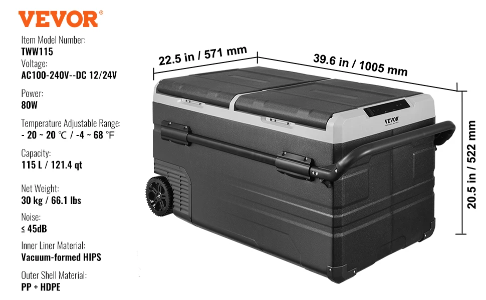 Dual Use for Home/Car: Designed with sturdy wheels and a telescopic handle for effortless and stable transportation. Additionally, the car fridge is equipped with 110/240V AC and 12/24V DC adapters, making it suitable for use at home, on yachts, RVs, cars, trucks, and vans.