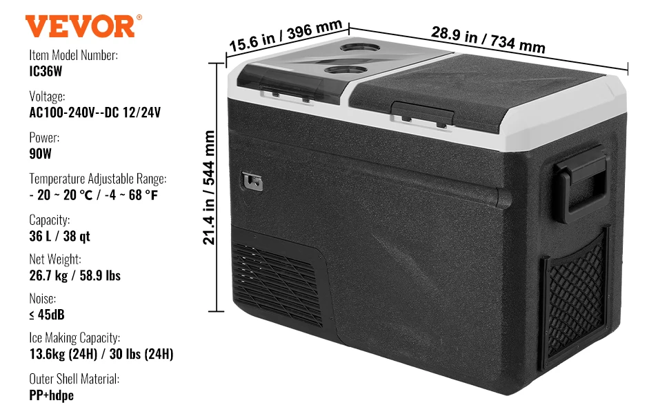 Quiet & Energy Efficient: The fridge operates with noise ≤ 45dB, ensuring you sleep well after long drives. You can also choose between ECO and Max modes via the LCD touchscreen. In ECO energy-saving mode, the operating power of this portable fridge is less than 48W. Even when running in MAX mode (54W), its intelligent circulation consumes less than 1 kWh/day.