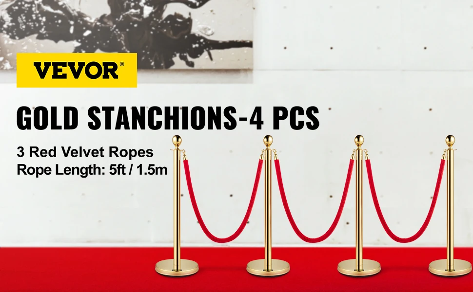 • Easy Installation: Four adapters are at the top of each stanchion post for velvet rope to connect. Furthermore, each rope has hooks at both ends to allow you to attach the rope to the pillars easily and quickly. You don't need to use other auxiliary tools, and you can set it up in a few minutes.