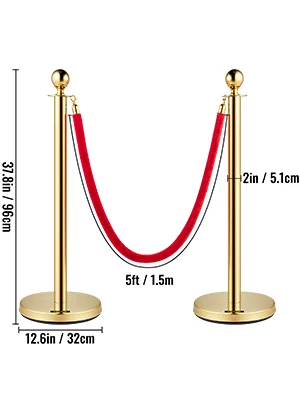 38Inch Gold Silver Stanchion Posts Queue Red Velvet Rope Crowd Control Line Barriers with Stable Base for Party Supplies