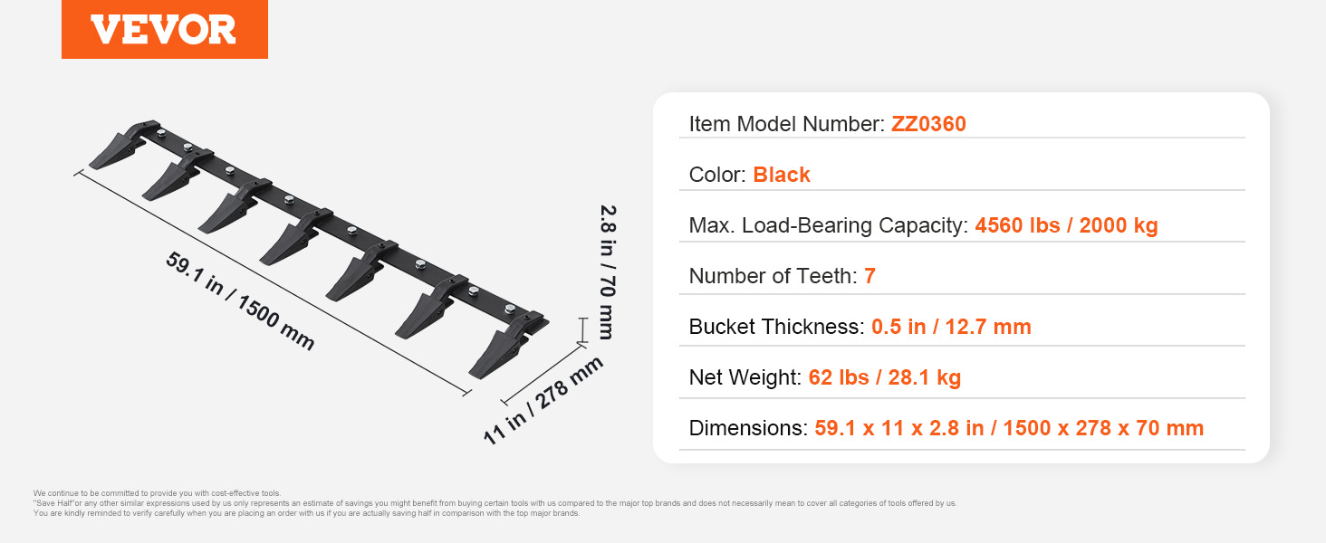 • Versatility at Its Best: Unlock versatility with our 53'' tooth bar for tractor buckets, your multi-purpose tool designed for a wide array of projects. Perfect for excavating loose soil, sand, sod, and gravel, this tooth bar for loader bucket adapts to your needs, making it essential for urban construction, mining, railway lines, roads, and hydraulic projects.