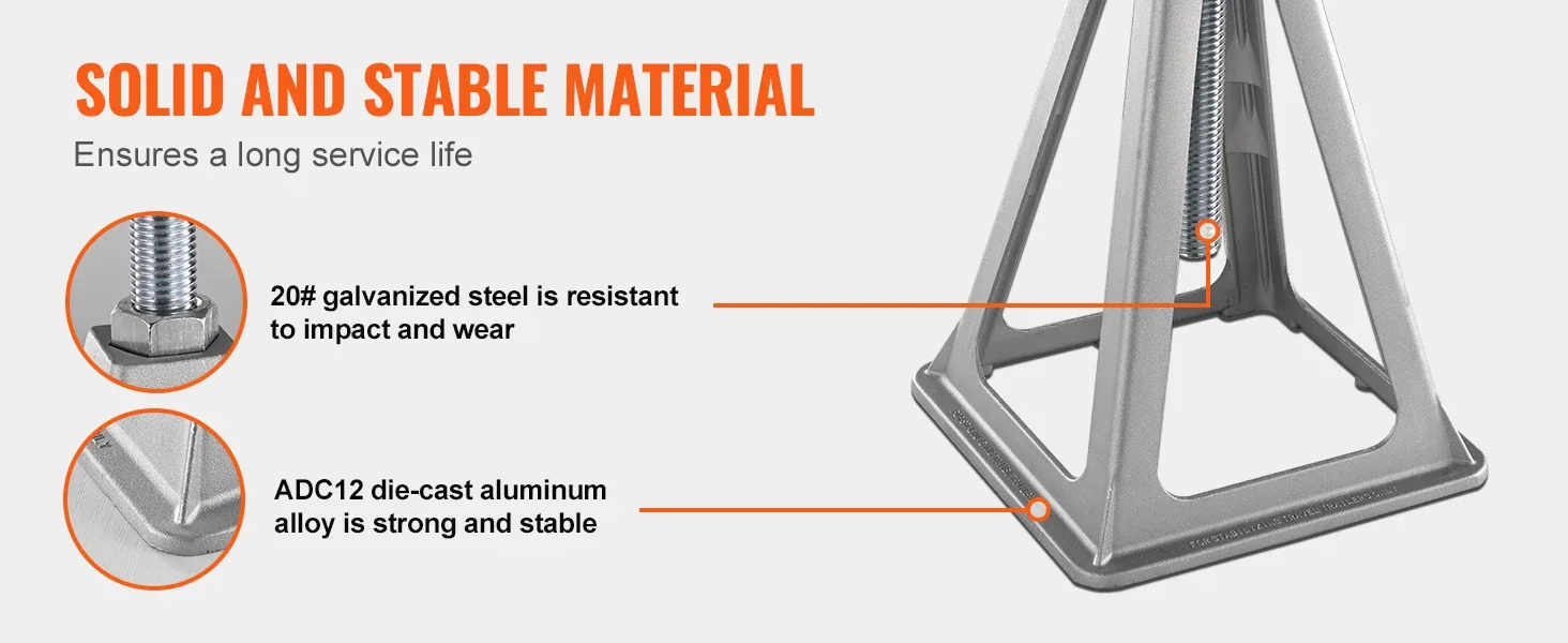 Crafted from durable ADC12 die-cast aluminum, our RV stack jacks resist corrosion and rust. The screws utilize 20# galvanized steel to withstand impacts, wear, and tear and last longer.
