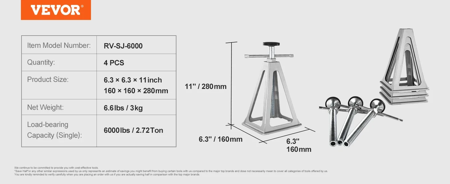 Get reliable stability for your RV with our stabilizer jacks. Each set has four, each handling 6000 lbs (2.72t). The triangle structure keeps steady, reducing shaking and ensuring security. Enjoy your activities confidently!