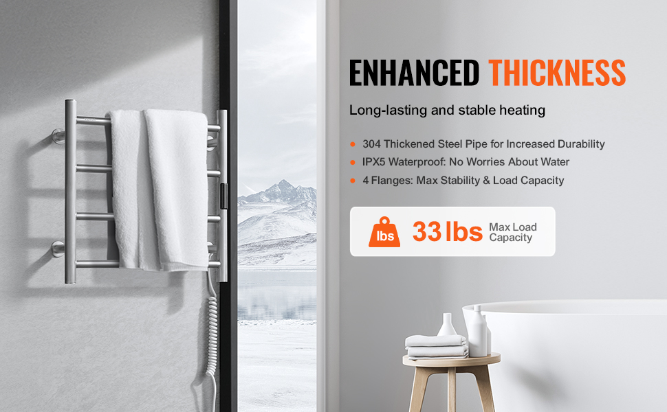• Stable Load Capacity: Enhanced with a flange for increased stability and load-bearing capacity, this towel heater offers reliable performance. It is a perfect solution for warming towels and clothes.