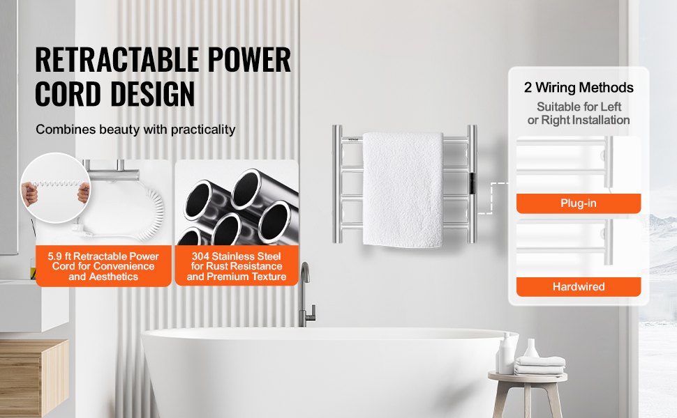 • High Quality: Built with a thick wall design, this towel warmer is durable and provides consistent heating. Its neat left and right wiring layout enhances the product’s appearance and ensures a clean look.