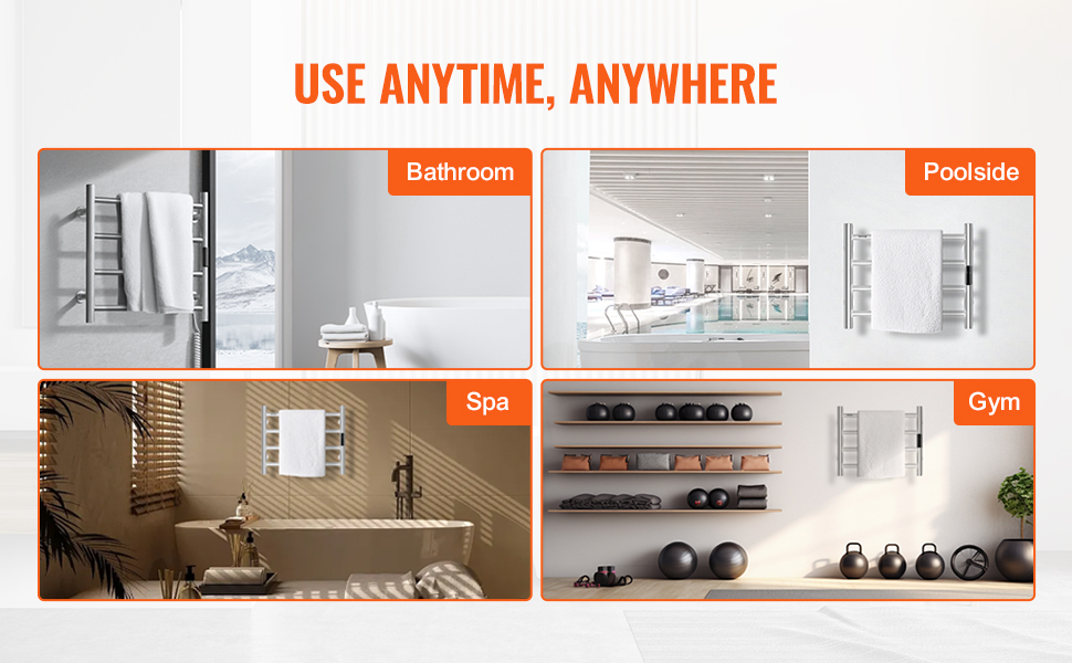 • Rapid Heating: This towel warmer rack heats up to 131°F/55°C in just 5-10 minutes, ensuring efficient drying. With a 5-level temperature adjustment feature, you can set the temperature to your preferred level for optimal drying results.